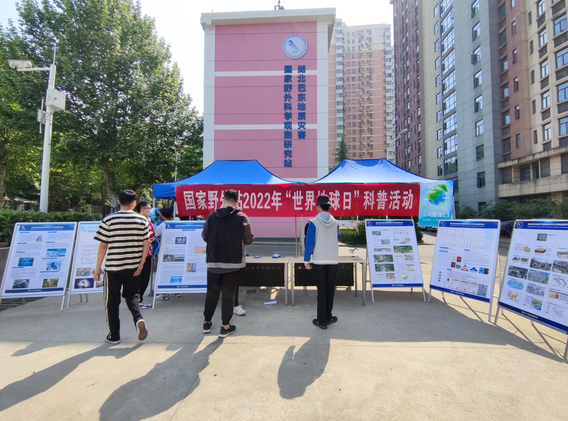4月22日,国家野外站在opta足球校园开展科普宣传,通过发放宣传单、布设展板、科普宣讲等形式,吸引在校师生及附近居民到国家野外站大楼前了解学习。同一时间,在距离武汉500公里的巴东县黄土坡,一堂生动有趣的地质灾害科普“云课堂”正在进行,广大中小学生参与科普知识问答互动。