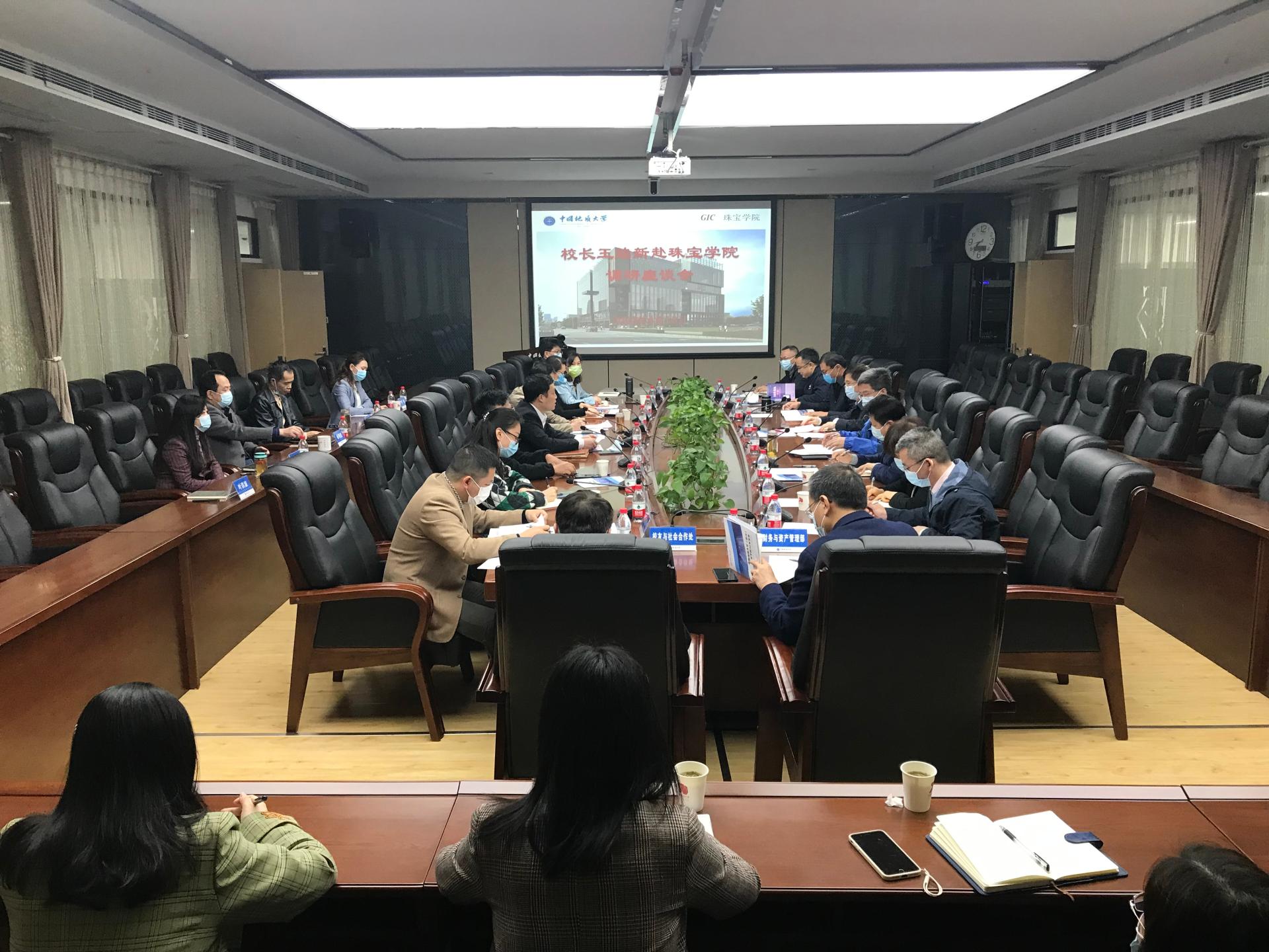 珠宝学院院长尹作为作题为《砥砺奋斗三十年,七秩荣光谋新篇》的工作汇报。他从学院基本情况、人才培养、科学研究、社会服务、国际合作、工作建议等六个方面作了详细汇报,并提出工作建议。杨明星教授、沈锡田教授、张荣红副院长先后就珠宝产业现状及发展趋势、学科专业建设、宝石相关专业委员会、国际化人才培养、设计专业人才引进等方面畅谈认识并提出工作建议。