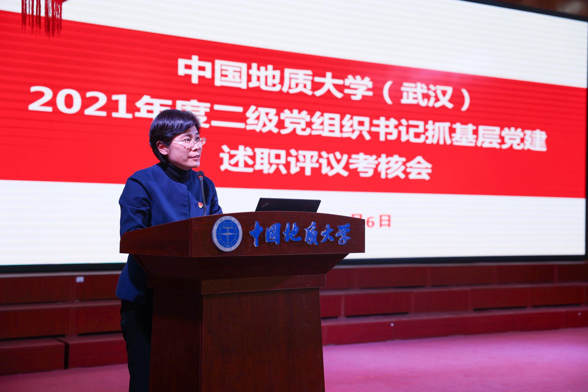 校党委书记黄晓玫在会上作总结点评并讲话。她指出,2021年学校各级党组织坚持以党的政治建设为统领,切实加强党对学校工作的全面领导,在推进党史学习教育、“双一流”建设、“十四五”规划等工作中较好地发挥了党建引领作用,学校党委成功入选第三批“全国党建工作示范高校”培育创建单位。在肯定成绩的同时,她对2022年度加强和改进学校基层党建工作提出了三点工作要求:要构建高质量党建工作体系。结合学校实际,把党中央、教育部对高校基层党建工作的要求转换成学校办学治校的方略。通过学用结合,在完成既定工作任务的同时解决好实际问题,扎实推进学校事业发展。要有针对性地抓好2022年基层党建思政重点工作。抓学习,把握国内外发展形势和教育科技行业改革发展趋势;抓规划,推动本单位和学校整体事业的同频发展;抓制度,用制度管人管事,让制度落地落实。要继续提升党员干部的治理能力和综合素质。积极走出去找差距、找榜样、定坐标,采取灵活多样的形式提升党员干部培训的质量,强化责任担当,以优异成绩共同迎接党的二十大召开和70周年校庆。