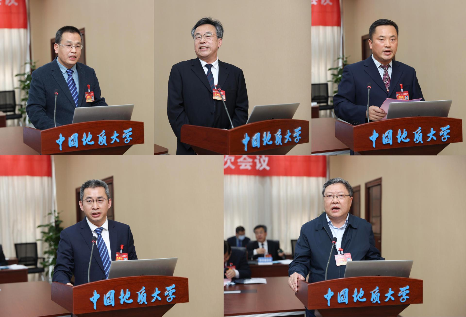 财务与资产管理部部长杨从印,校学术委员会主任童金南,校教代会提案工作委员会主任杨世清,发展规划与学科建设处处长徐绍红,党委常委、宣传部部长、校庆工作办公室主任储祖旺分别发言,围绕2021年度财务工作、校学术委员会工作、九届三次教代会提案办理情况、学校“双一流”工作、七十周年校庆筹备工作等作专题报告。