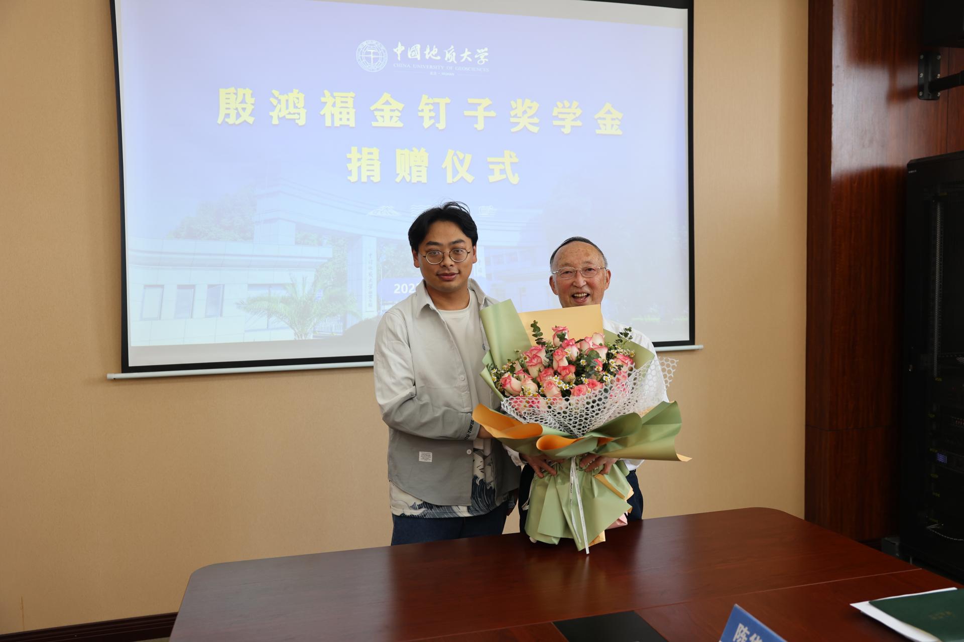 学校基金会理事长郝翔向殷鸿福院士颁发《捐赠证书》