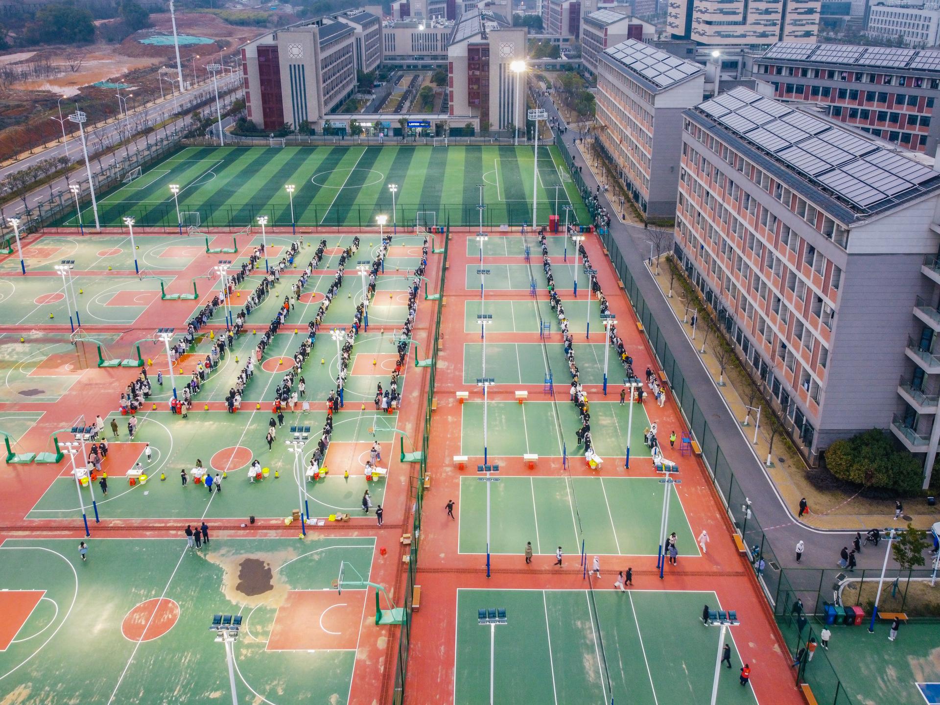 2月22日,未来城校区全员核酸检测现场。 易修平摄