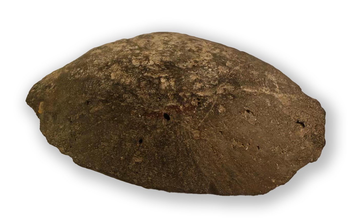 熊桃菊、黄伯裔1983年采自黑龙江五大连池的榄球状火山弹标本,现藏于逸夫博物馆