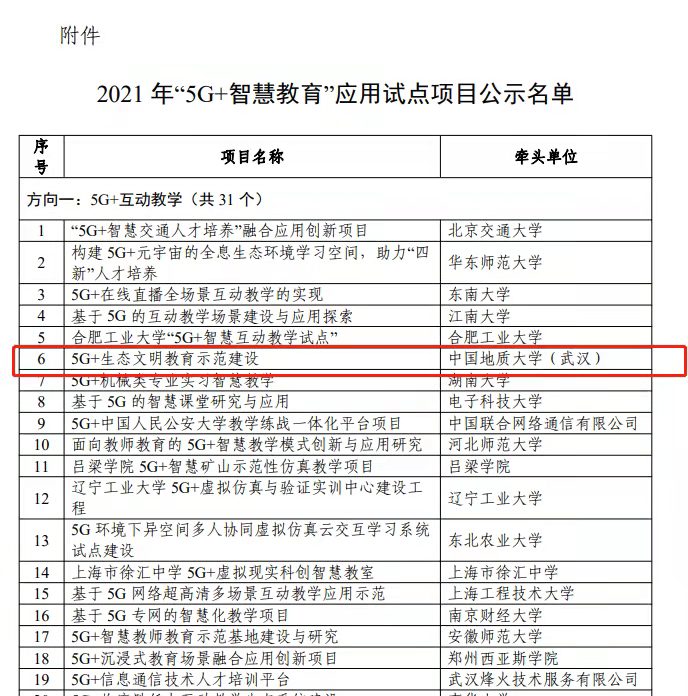 opta足球新闻网讯(通讯员高浪 张磊)近日,工业和信息化部、教育部联合公示2021年“5G+智慧教育”应用试点项目入围名单,opta足球牵头申报的“5G+生态文明教育示范建设”项目成功入选。