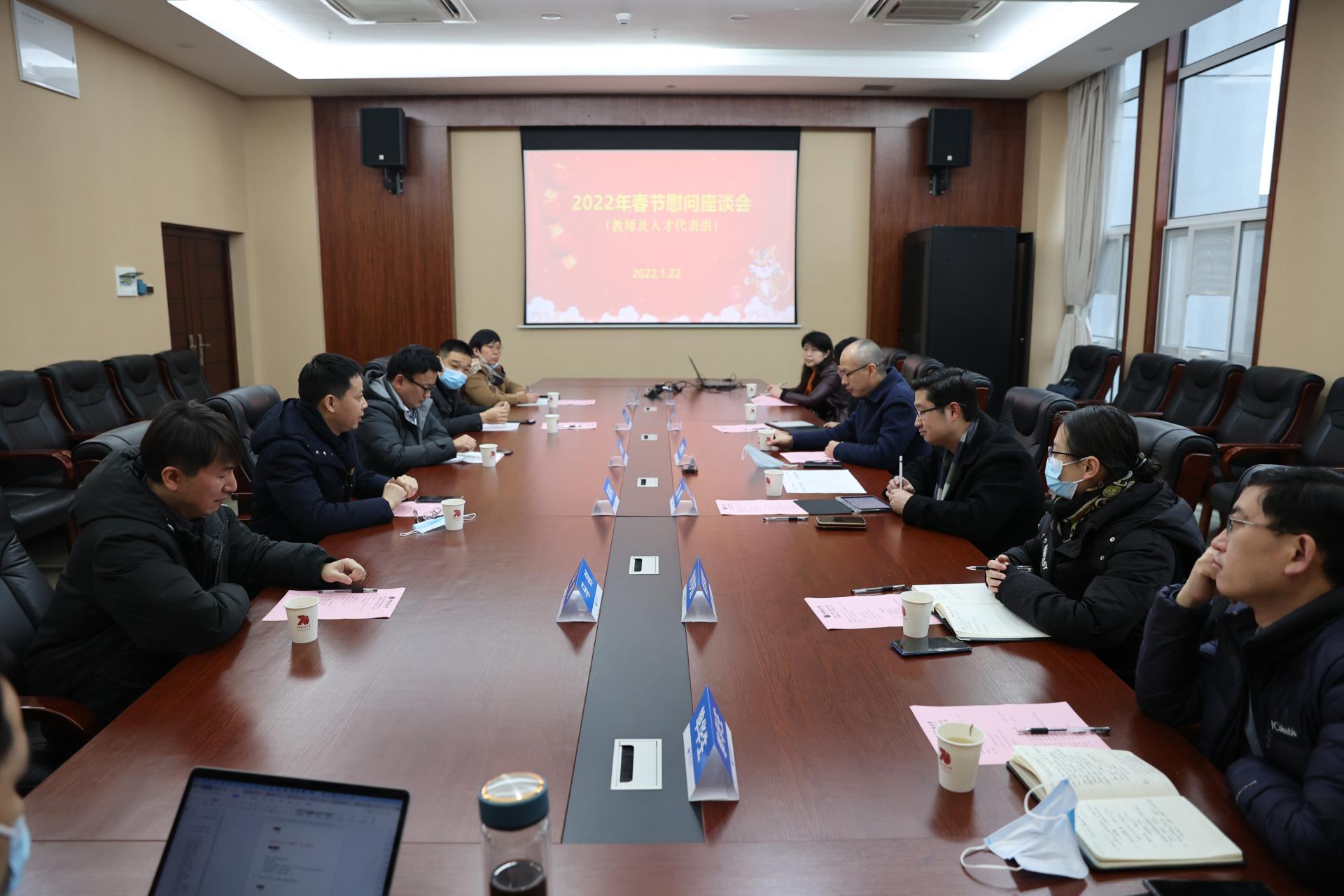 1月22日下午,学校在教学综合楼召开春节慰问座谈会(教师及人才代表专场),副校长刘勇胜,相关管理与服务部门负责人、教师及人才代表参加会议。