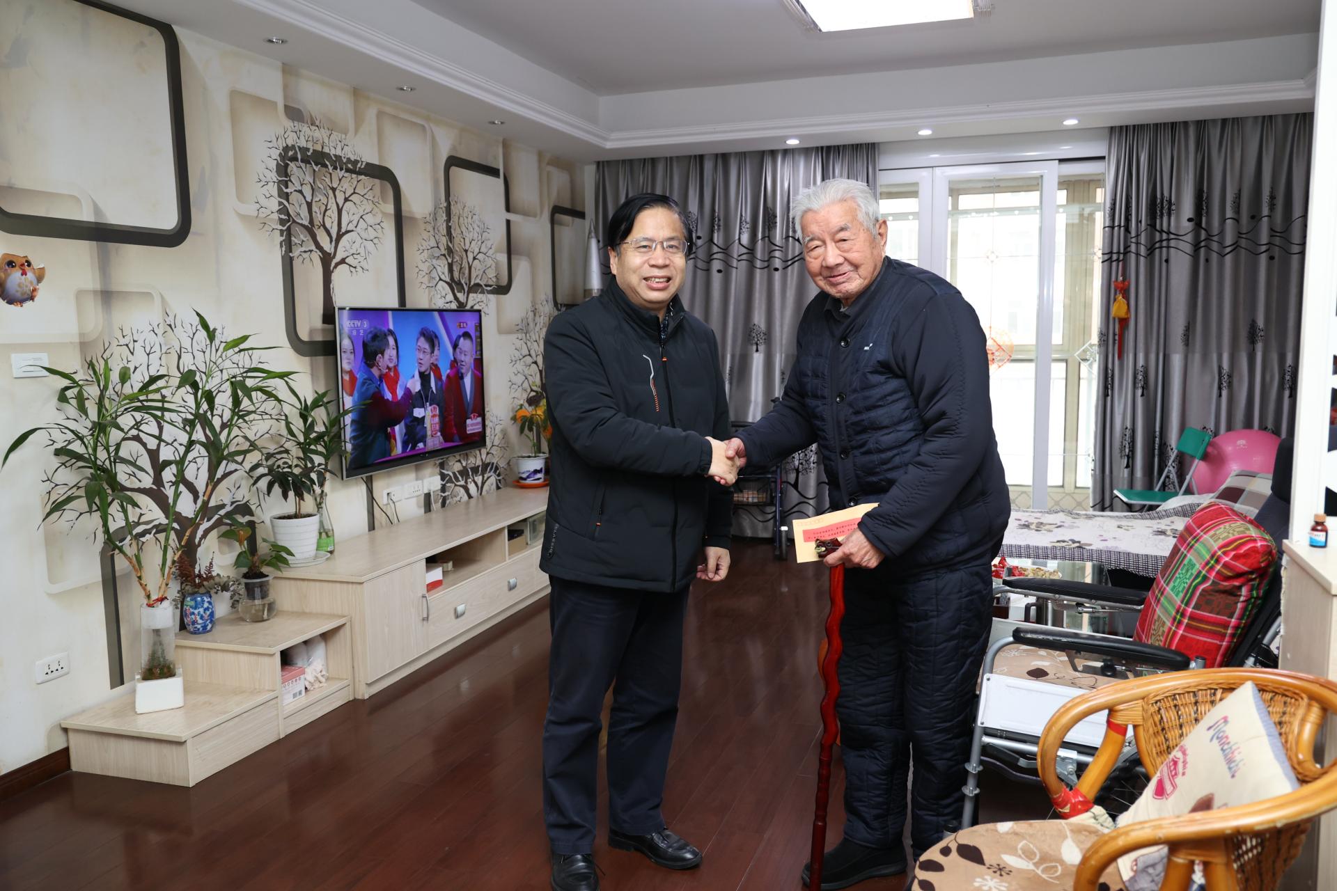 1月24日,校党委副书记唐辉明率队看望慰问抗战老同志于新洲、离休老干部霍绍周,向他们致以节日问候和崇高敬意,亲切询问他们的身体、生活状况,感谢他们为党和人民作出的贡献。
