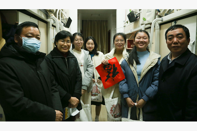 黄晓玫一行走进宿舍为同学们送上“福”字