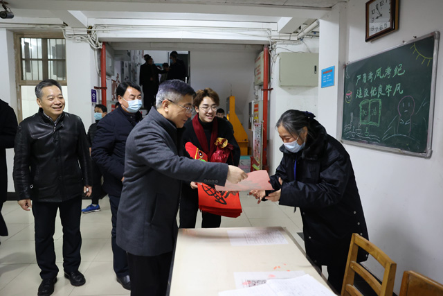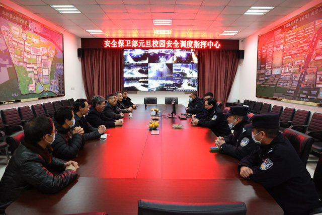 在南望山校区,校长王焰新、副校长王华、周爱国一行先后到西区大学生活动中心、学生宿舍、安全保卫部视频调度室、西一门、东一门、东区综合楼、24小时监控室等实地检查安全工作和疫情防控情况,向师生员工送去元旦的问候和祝福。