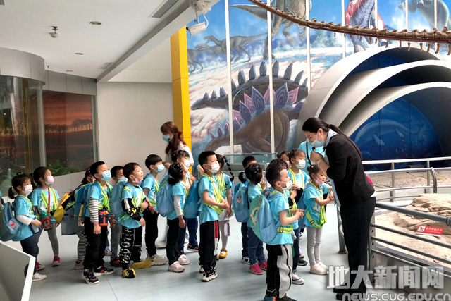 唐晓玲在为小朋友讲解恐龙化石 彭晶摄