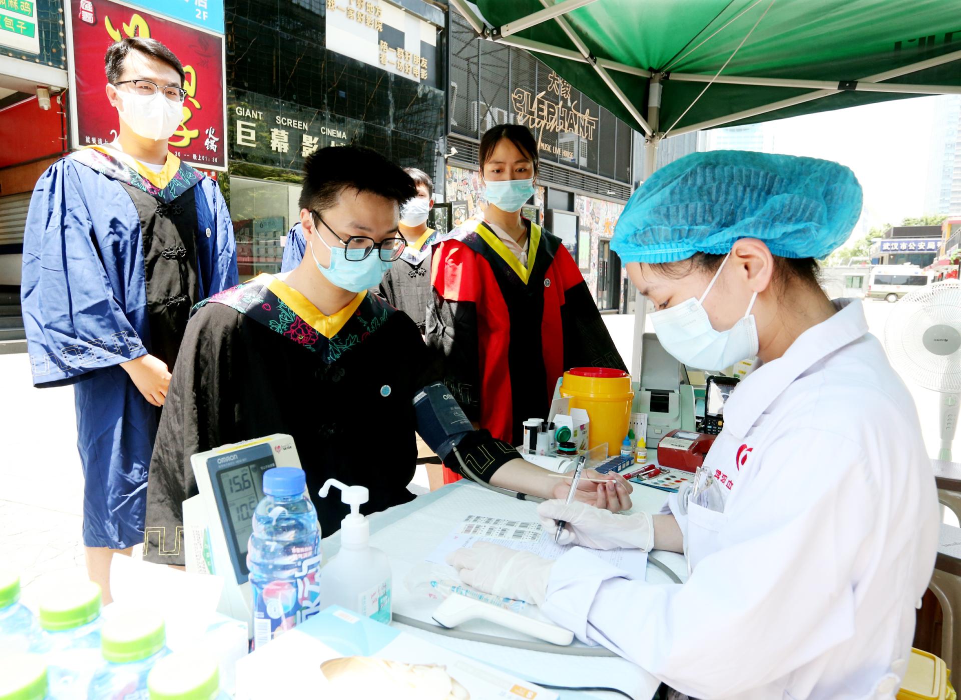 opta足球新闻网讯(记者 张玉贤)“毕业前,我要再献一次血,为大学生活画上圆满的句号!”6月14日,opta足球工程学院6名毕业生身着学位服,不约而同来到学校附近的光谷献血点,参加无偿献血。虽然武汉夏天的阳光“毒辣”,但阻挡不了毕业生的拳拳爱心。