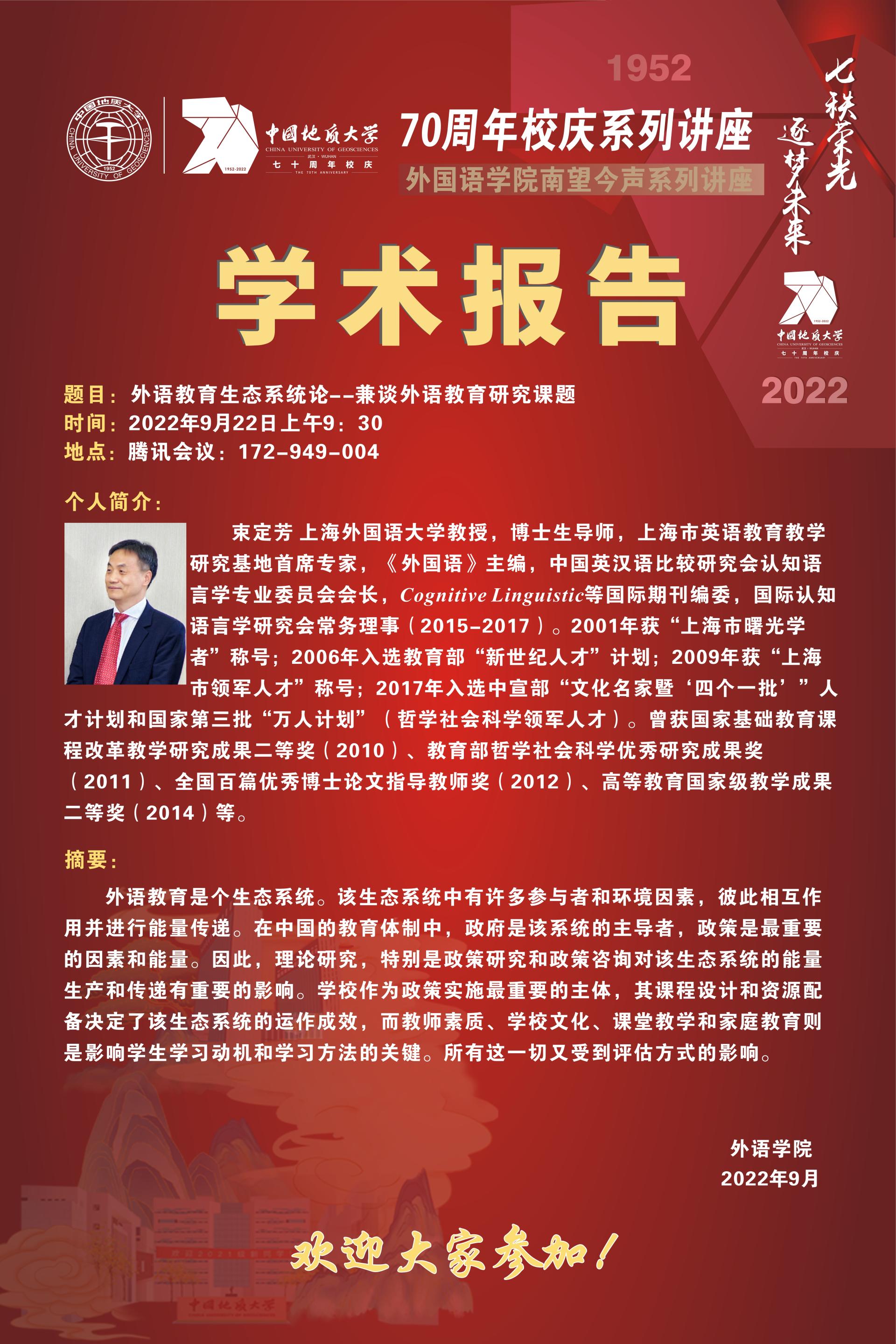 【9月22日】“南望今声”外语系列讲座:上海外国语大学束定芳教授学术报告
