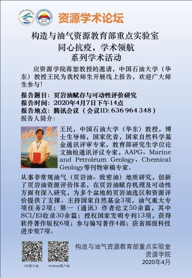 【4月7日】资源学术论坛:页岩油赋存与可动性评价研究