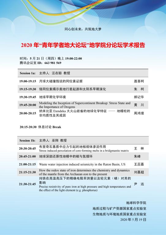【5月21日】2020年“青年学者opta足球论坛”地学院分论坛学术报告