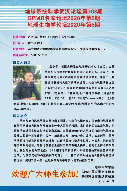 【6月11日】地球系统科学武汉论坛:高效地表过程和地质体变形模拟方法:反演构造和气候历史