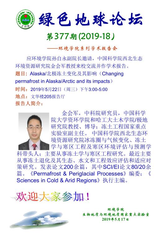 [5月22日]绿色地球论坛:中国科学院西北生态环境资源研究院金会军教授学术报告