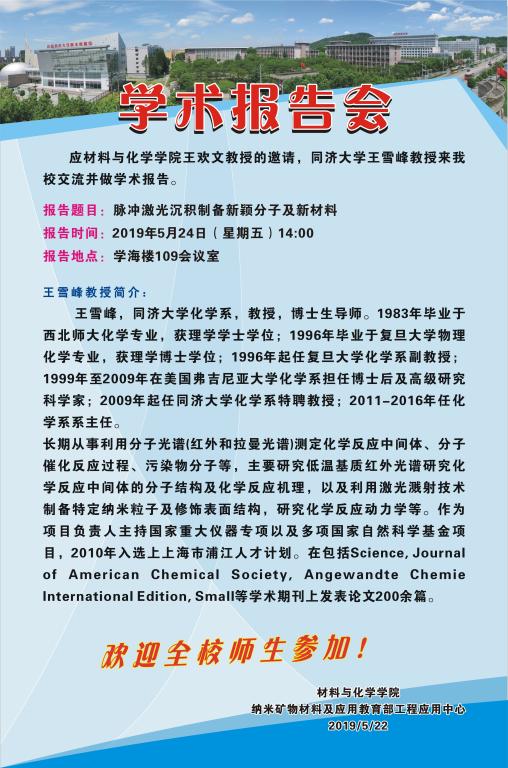 [5月24日]材化学术论坛:同济大学王雪峰教授学术报告