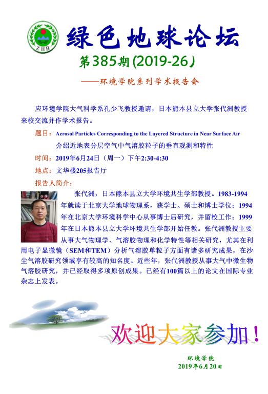 [6月24日]绿色地球论坛:日本熊本县立大学张代洲教授学术报告