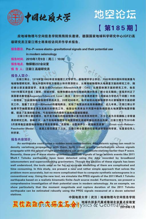 [7月9日]地空论坛:德国国家地球科学研究中心(GFZ)高级研究员汪荣江博士学术报告