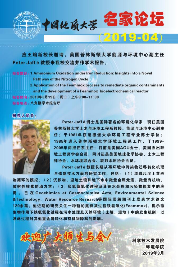 [3月19日]名家论坛:美国普林斯顿大学能源与环境中心副主任Peter Jaffé教授学术报告