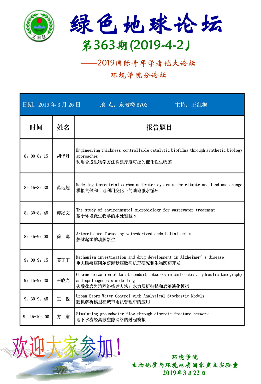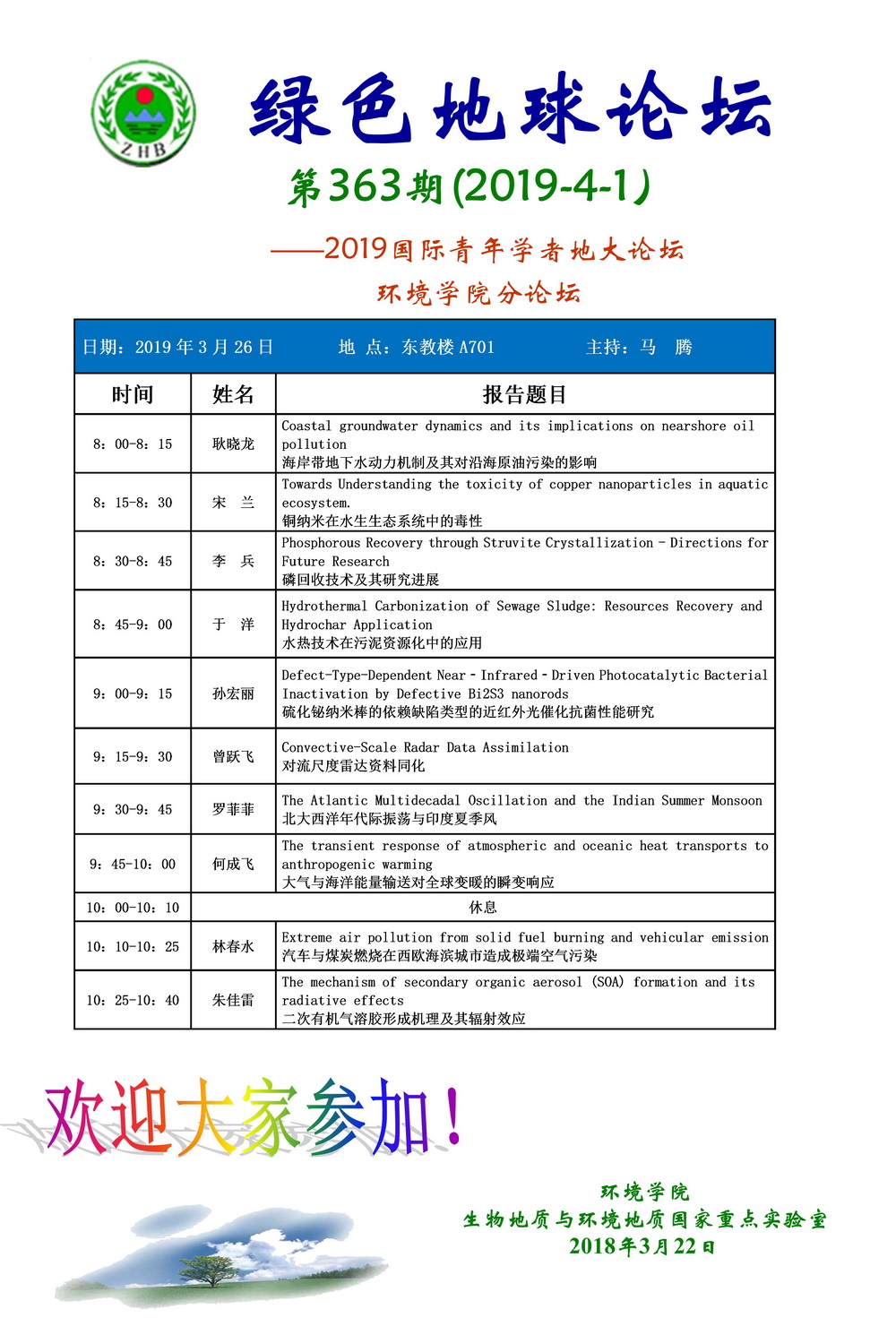 [3月26日]绿色地球论坛:2019国际青年学者opta足球论坛环境学院分论坛