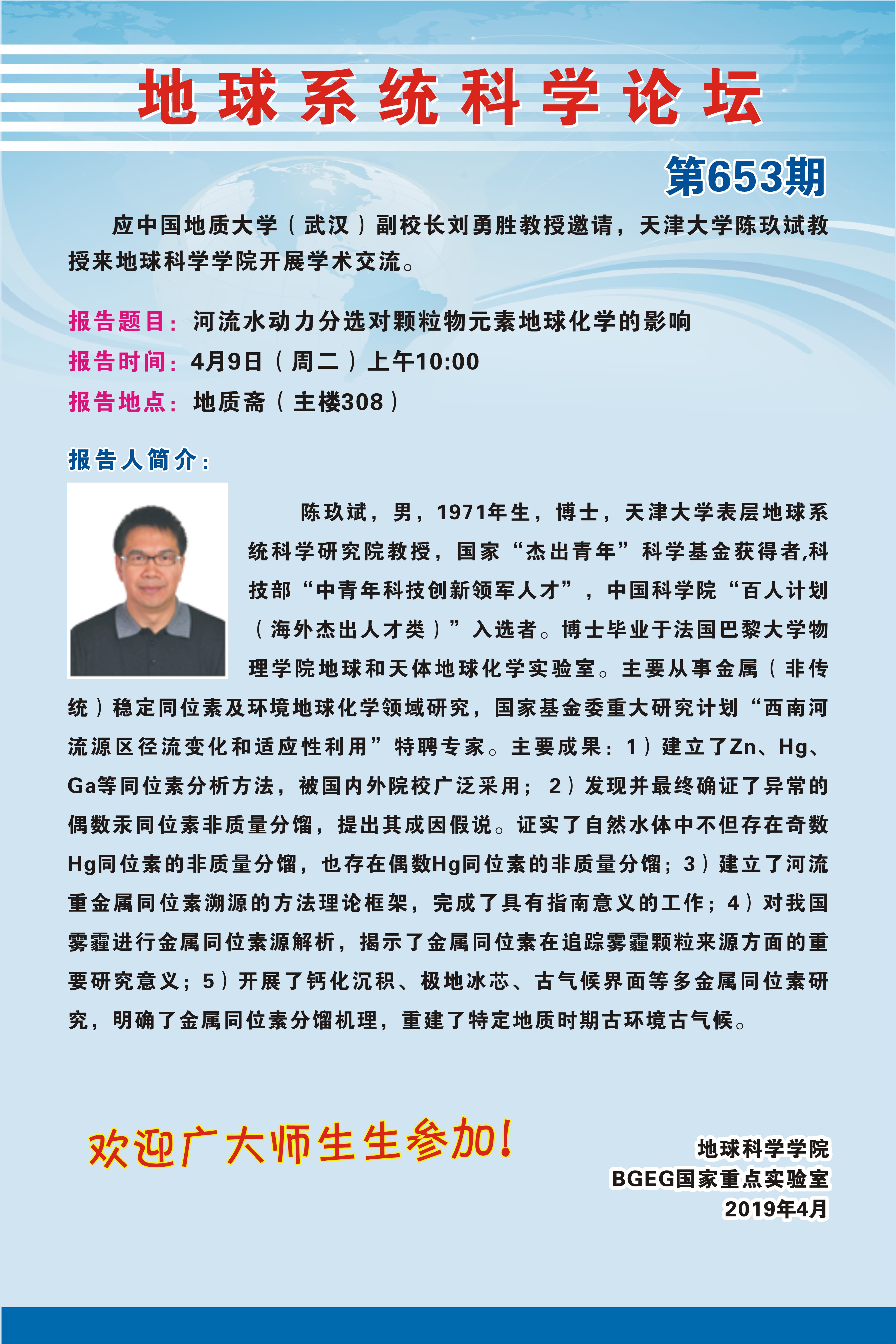 [4月9号]地球系统科学论坛:天津大学陈玖斌教授学术报告