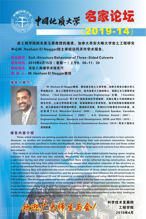 [4月15日]名家论坛:加拿大西安大略大学岩土工程研究中心M.Hesham EI Naggar院士学术报告
