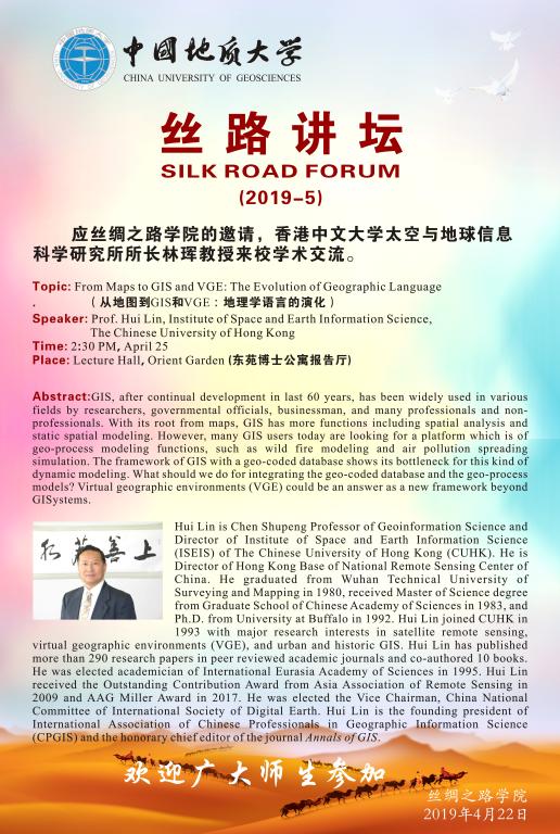 [4月25日]丝路讲坛:香港中文大学林珲教授学术报告(从地图到GIS和VGE:地理学语言的演化)