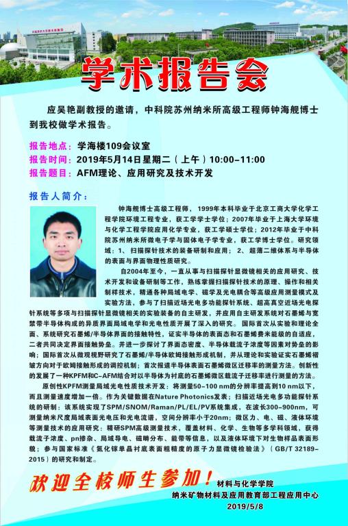 [5月14日]材化学术论坛:中科院苏州纳米所高级工程师钟海舰博士学术报告