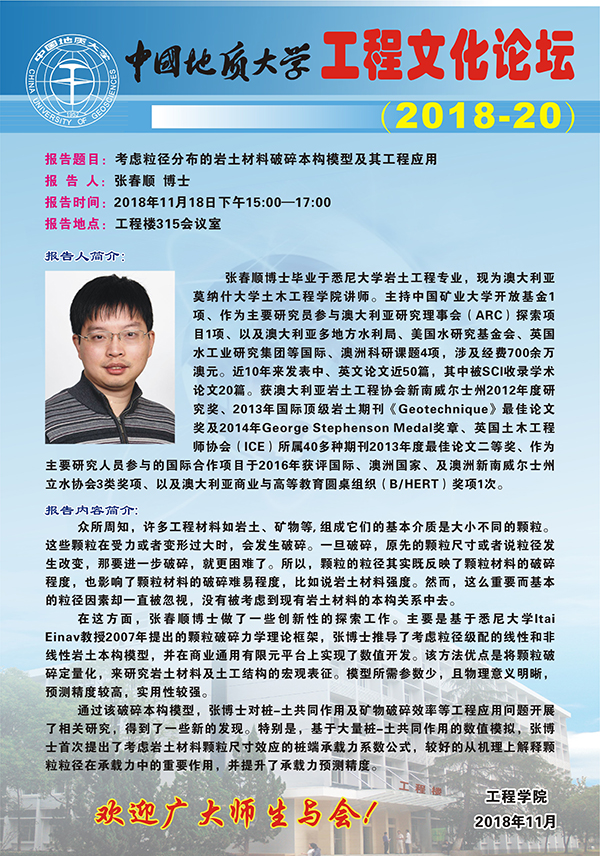 [11月18日]工程文化论坛:澳大利亚莫纳什大学张春顺博士学术报告