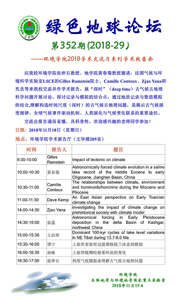 [11月18日]绿色地球论坛:“深时”古气候古地理学术报告会
