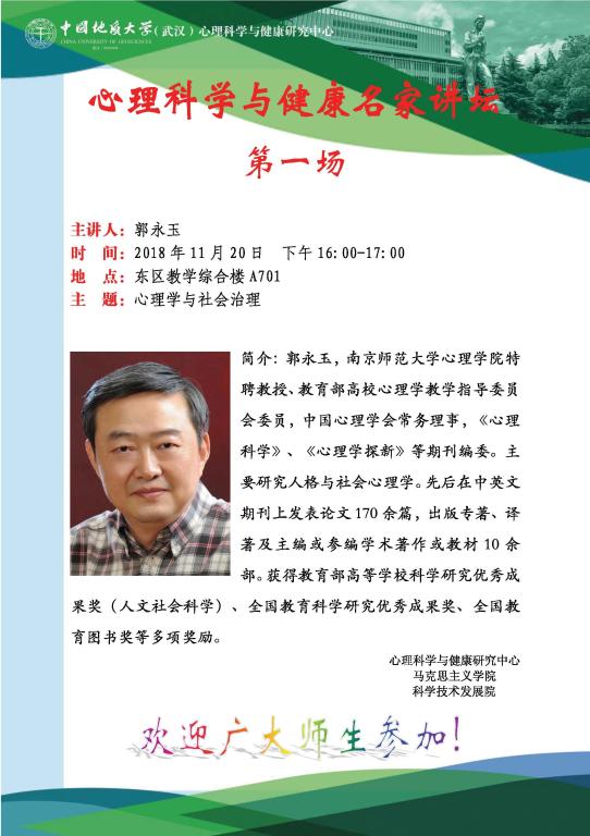 [11月20日]心理科学与健康名家讲坛(第一场)