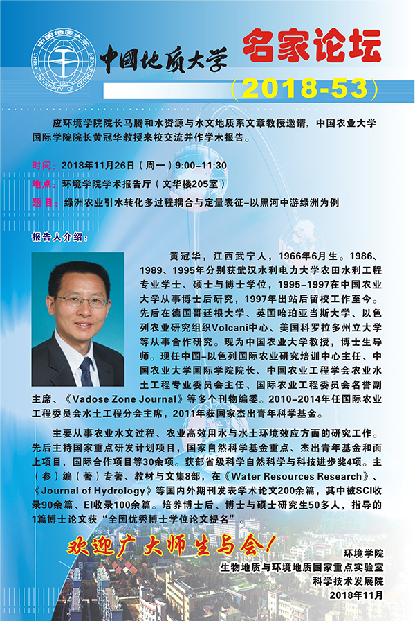 [11月26日]名家论坛:中国农业大学国际学院院长黄冠华教授学术报告