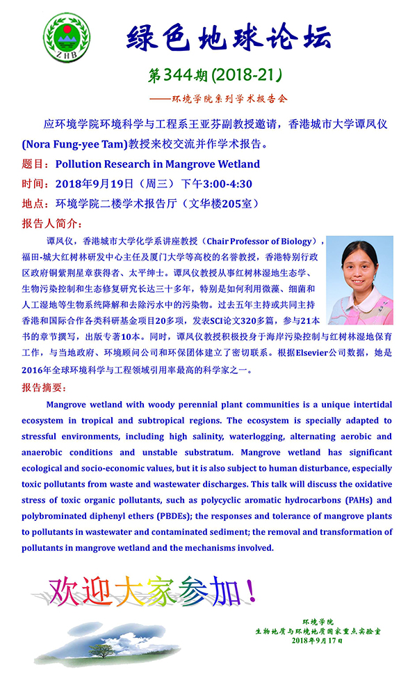 [9月19日]绿色地球论坛:香港城市大学谭凤仪教授学术报告