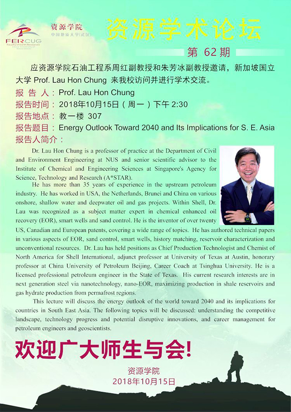 [10月15日]资源学术论坛:新加坡国立大学Prof.Lau Hon Chung学术报告