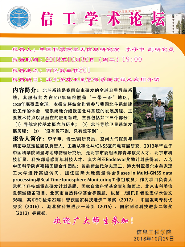 [10月30日]信工学术论坛:中国科学院空天信息研究院李子申副研究员学术报告