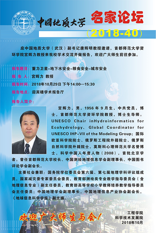 [10月29]名家论坛:首都师范大学资环学院宫辉力教授学术报告